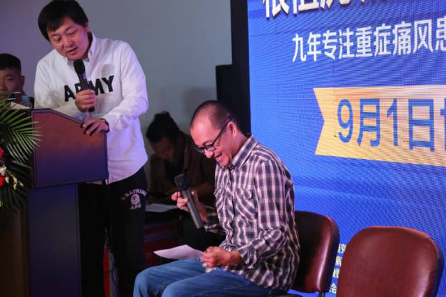 然后由張芮袀先生分享抗風(fēng)竤團(tuán)隊(duì)走過的九年歷程。從自己也是一位痛風(fēng)患者講起,介紹了“東北雌性紅蘿卜”不僅治愈了自己,也治愈了身邊的人。由此想到組建團(tuán)隊(duì),讓治痛風(fēng)的方式更廣闊的傳播出去,以幫助更多的痛風(fēng)患者。制定“世界抗痛風(fēng)日”的初衷就是呼吁社會(huì)多關(guān)注痛風(fēng),遠(yuǎn)離不良的生活方式,同時(shí)希望這種治療痛風(fēng)的療法能走出全國,走向世界!