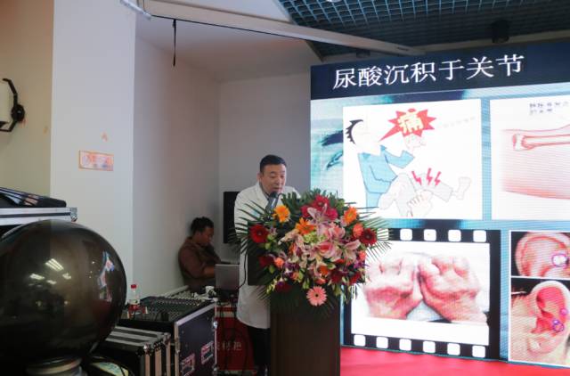 10:30分大型痛風(fēng)科普講座隨后開始。痛風(fēng)主任張嘯醫(yī)師講述了痛風(fēng)的成因和危害;痛風(fēng)康復(fù)指導(dǎo)師汪建明主任講解了藥物治療的危害、CT診斷病情和基因?qū)ν达L(fēng)的影響;張芮袀先生分享了“抗風(fēng)紅·東北雌性紅蘿卜”的科研成就、治療痛風(fēng)的神奇療效和正確生活方式可以規(guī)避痛風(fēng)的侵害。