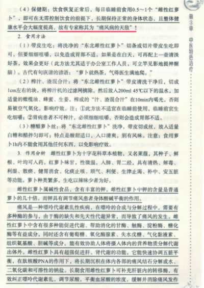 【以上為《痛風(fēng)中醫(yī)特色療法》一書中對雌性紅蘿卜的經(jīng)典論述】